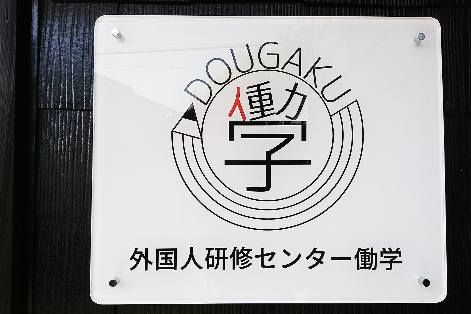 外国人研修センターの施設の正面に表札が出来ました。ガラスで創られており、オシャレにできています。こちらも評判がいいです!